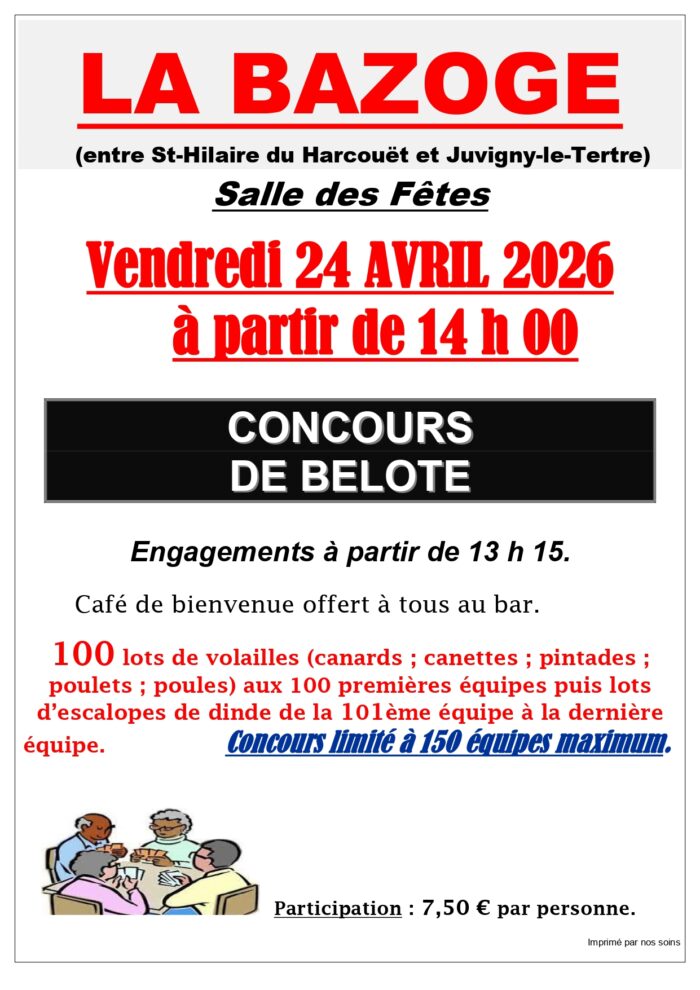 À partir de 14h à la salle des fêtes de La Bazoge